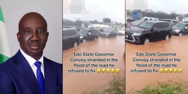 Edo Governor’s Convoy Stuck in Flooded Benin Road Sparks Outrage and Mockery Online