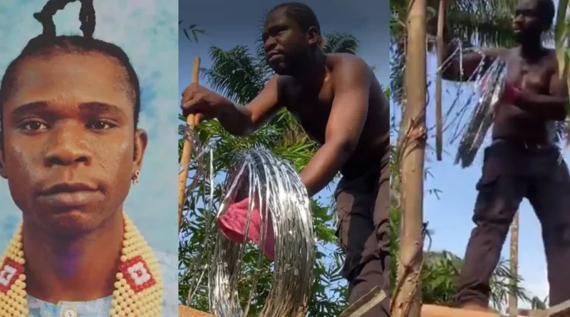 The entertainer is still constructing his home in his village in eastern Nigeria, and the barbwire installation is part of the ongoing work. The video has drawn several reactions from social media users, many of whom commented on his frugality and willingness to take on the project himself.