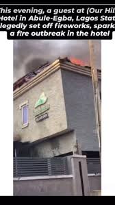 Properties worth over 30 million naira were reduced to ashes at Our Hills Hotel in Abule-Egba this evening after a guest accidentally set a room on fire with fireworks. pic.twitter.com/JWUY9MlSZt