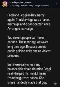 Fresh speculation about the relationship followed a post shared on Instagram by veteran Nollywood movie producer Stanley Ontop, who claimed that the couple had been separated for some time. According to him, the marriage had been troubled and allegedly ended long before the reports resurfaced online. Eyes Of Lagos reports,