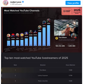 This latest achievement adds to Pastor Jerry Eze’s growing list of digital milestones. In 2024, reports revealed that he had become Nigeria’s highest-earning YouTube creator, with his live-streamed prayer meetings reportedly generating over ₦7 billion in revenue.
