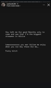 In a series of emotional posts shared on social media, Carter Efe disclosed that the relationship took a significant toll on his mental health, finances, and creative output. According to him, the period was marked by emotional distress that affected his ability to think clearly, create content, and maintain financial stability. Eyes Of Lagos reports,