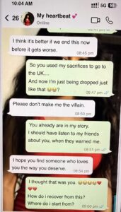 In messages shared online, the woman reportedly expressed gratitude for his sacrifice before leaving Nigeria but admitted she felt uncomfortable about the extent of what he had done for her.