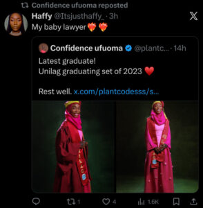 According to the post, the deceased was a member of the University of Lagos graduating set of 2023, having recently completed her academic programme in the Faculty of Law.