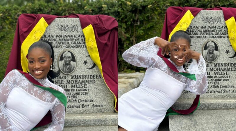 Lady Celebrates Convocation at Late Father’s Grave, Touches Hearts Online
