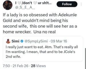Old social media posts by Nigerian singer Simi have resurfaced online, revealing her once-humorous admiration for American rapper J. Cole, sparking reactions among fans and internet users.
