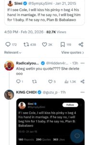 “If I see Cole, I will kiss his pinky n beg 4 his hand in marriage. If he say no, I will beg him for 1 baby. If he say no, Plan B: Babalawo.”