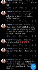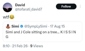 “Simi and J Cole sitting on a tree… K I S S I N G.”