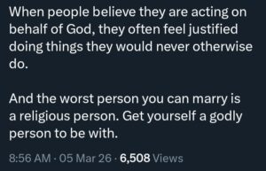 A man has triggered intense debate on social media after claiming that the worst partner someone can marry is a religious person, a statement that has generated mixed reactions from users online.